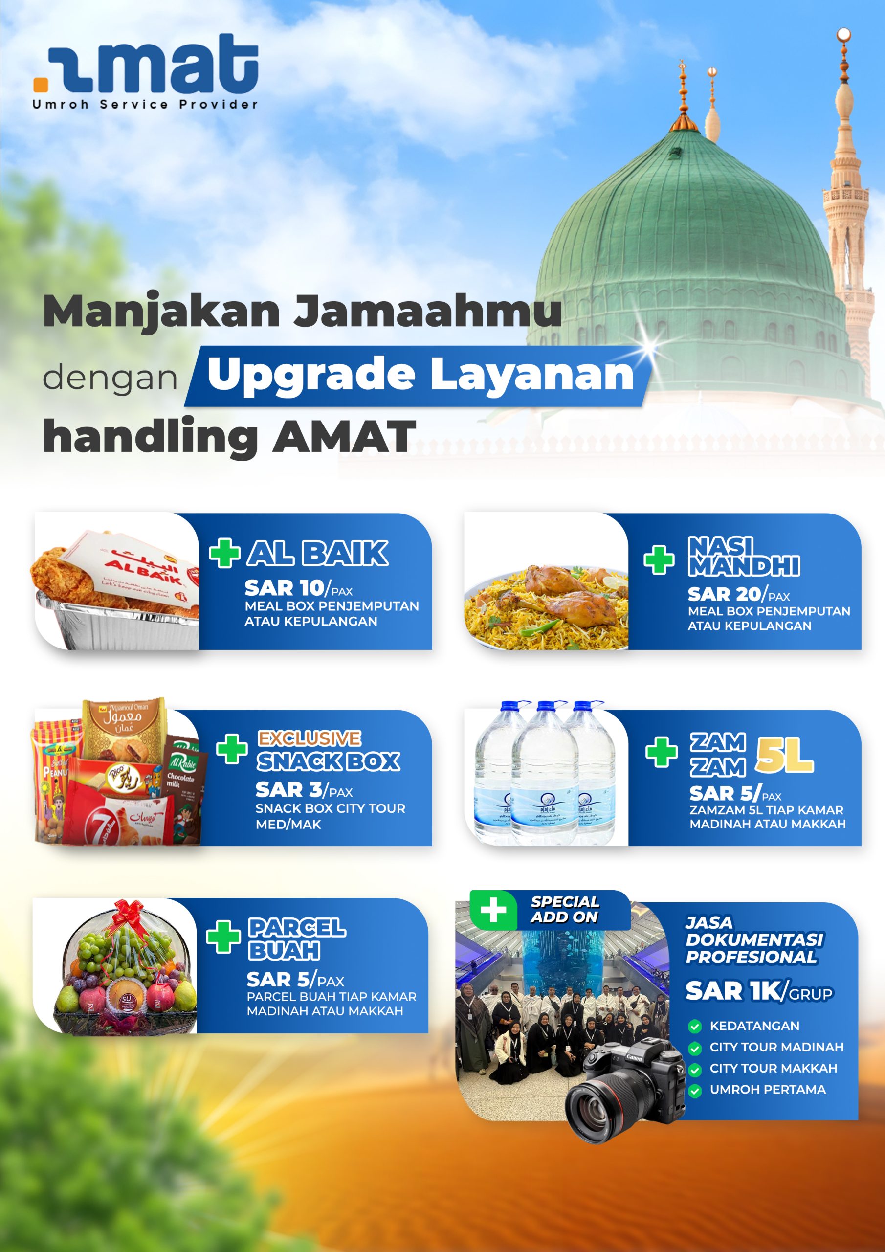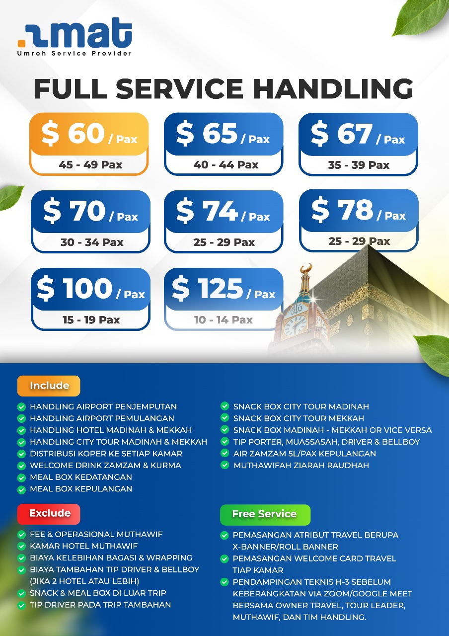 AMAT GROUP hadir dengan sistem Ground Handling terpadu yang dibangun berdasarkan pengalaman mengatasi semua tantangan di atas. Kami didukung oleh tim lapangan yang Satset, responsif, dan komunikatif, memastikan setiap masalah teknis ditangani dengan cepat dan informasi perubahan disampaikan secara efektif. Kami juga menyediakan Tim Monitoring 24 Jam yang beroperasi dengan SOP ketat dan zero drama, memaksimalkan kekhusyukan Jamaah.